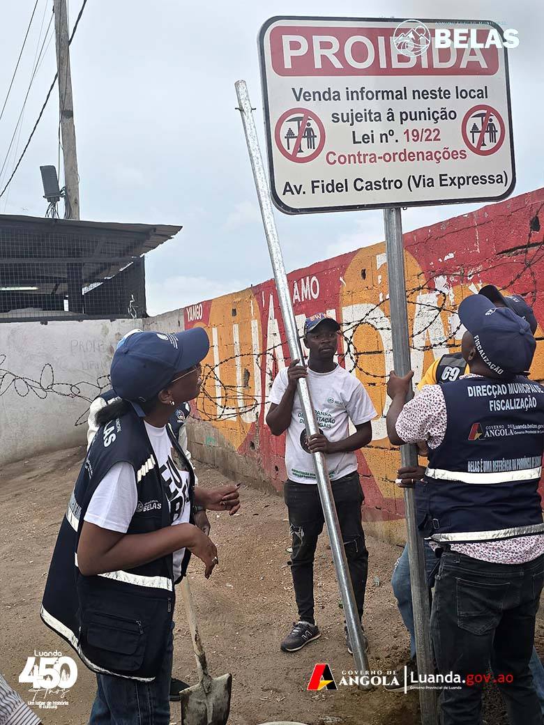 A Administração Municipal de Belas procedeu recentemente à colocação de placas de proibição de venda informal ao longo da Avenida Fidel Castro Ruz, no âmbito das acções do Programa de Reordenamento do Comércio (PRC).
